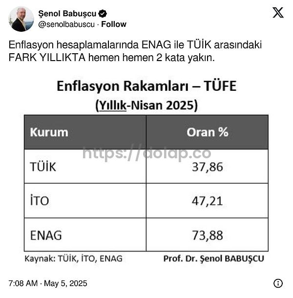 ‘Enflasyon hesaplamalarında ENAG ile TÜİK ortasındaki FARK YILLIKTA çabucak hemen 2 kata yakın.’